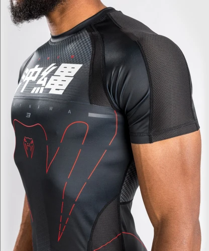 Rashguard Venum Okinawa 3.0 Kr. rukáv - černo/červenýŘada Okinawa 3.0 odkazuje na ostrov Okinawa, který je obecně považován za rodiště japonských bojových umění! Rashguard Venum Okinawa 3.0 je vyroben z kvalitního materiálu. Rashguard je ideální pro optimalizaci vašeho výkonu během tréninků BJJ, MMA, grapplingu nebo silových a kondičních tréninků.Technické vlastnosti- Materiál 1: 81 % polyester, 19 % elastan,- Materiál 2: 85 % polyester, 15 % elastan,- Sítotisk s logem,- Zesílené švy,- Velikost Rashguard je menší. Doporučujeme zvolit o jednu velikost větší velikost pro plnější střih a o dvě velikosti větší velikost pro volnější střih.- Model měří 190 cm a má velikost L.VENUM