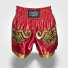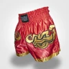 Thaibox trenky MACHINE v červené barvě. Z velice kvalitního saténu, na kterém je MUAY THAI výšivka . Výšivka je masivně obšita. Elastický pás zaručuje komfort a zároveň to, že trenky sedí tak jak mají a typycký střih zaručuje co nejlepší pohyb.