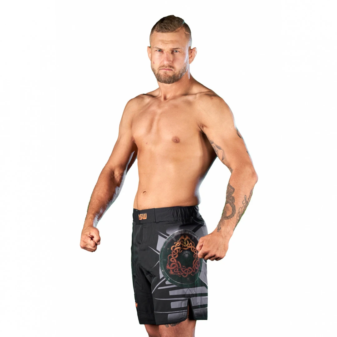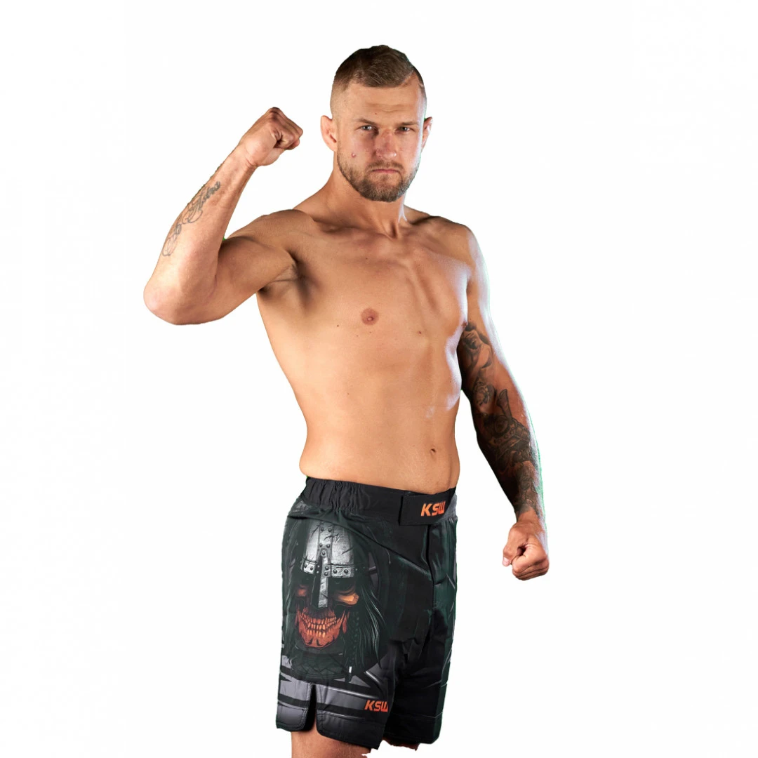 Pánské MMA šortky KSW Mad VikingPánské MMA šortky KSW Mad Viking. Odvážná, originální a agresivní grafika s tématikou Vikingů. MMA šortky jsou navrženy s ohledem pro intenzivní trénink, mají zesílené švy a jsou vyrobeny z pevného elastického materiálu. Rashguard z oficiální oblečení z kolekce KSW. Konfrontacja Sztuk Walki známější pod svými iniciálami KSW, je široce považována za jednu z nejlepších Evropských organizací se sídlem v Polsku. Polská jednička MMA (smíšených bojových umění) KSW vstupuje na český trh a my máme možnost nabídnout vám oficiální oblečení této organizace.Model je vysoký 178 cm a nosí velikost M. KSW