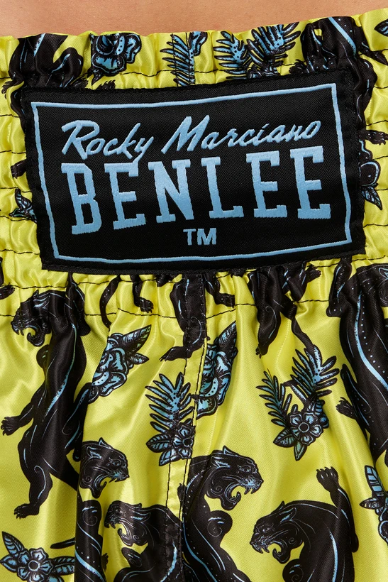Thai trenýrky BENLEE PANTHER - žluto/černéThai trenýrky BENLEE jsou ideální pro trénink a soutěže v thajském boxu. Thai trenýrky BENLEE PANTHER v žluto černo modré barvě. Super elastický pas zaručuje dokonalé přizpůsobení a boční rozparky na nohavicích zajišťují maximální volnost pohybu.- Pravidelný střih- Vyrobeno ze 100% polyesteru- Ideální střih díky elastickému pasu- Skvělé vyšívání loga- Materiál: 100% polyesterBENLEE