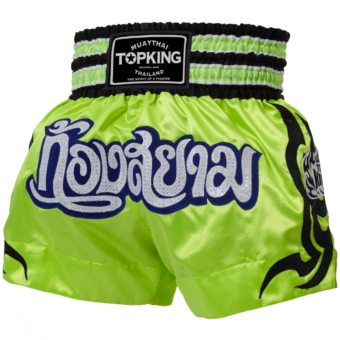 TOP KING trenky na Thajský box TKTBS-087Thajské trenky v neonově zelené barvě od značky TOP KING model TKTBS-071. Trenky TOP KING mají tradiční vysokou gumu v pase. Velice kvalitní satén a střih Thajských trenek neomezuje během tréninku, nebo zápasu v žádném pohybu. TOP KING je jedna z nejstarších a nejkvalitnějších Thajských firem zabívající se více něž 20. let výrobou rukavic, chráničů, vybavení a trenek pro bojovníky Muay Thai. Vyrobeno v Thajsku.M = 49 - 69 kg | L = 70 - 79 kg | XL = 80-89 kg | XXL = 90-105 kg