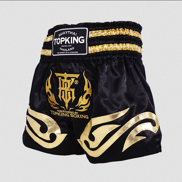 TOP KING trenky na Thajský box TKTBS-095Tradiční Thajské trenky na Muay Thai jsou v černé barvě a speciálně navržené s thajským minimálním zlatým vzorem. TOP KING model TKTBS-095. Trenky TOP KING mají tradiční vysokou gumu v pase. Tyto šortky jsou vyrobeny ze špičkových materiálů, což zaručuje, že vydrží mnoho tréninků. Díky elastickému pasu vám navíc budou dobře sedět, aniž byste se cítili příliš těsně. TOP KING je jedna z nejstarších a nejkvalitnějších Thajských firem zabívající se více něž 20. let výrobou rukavic, chráničů, vybavení a trenek pro bojovníky Muay Thai.Vyrobeno v Thajsku.M = 49 - 69 kg | L = 70 - 79 kg | XL = 80-89 kg | XXL = 90-110 kg