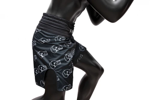 Klasické thajské trenky v provedení krátkého střihu s rozparky po stranách. Trenky mají vysokou gumu v pase, jak je u tohoto modelu trenek zvykem. Jemný satén je šetrný k pokožce a neomezuje během tréninku v jakémkoliv pohybu. Motivy a vyobrazení jsou tradiční pro thajskou firmu Fairtex a samotná jejich výroba je proslulá svou kvalitou a tradicí.