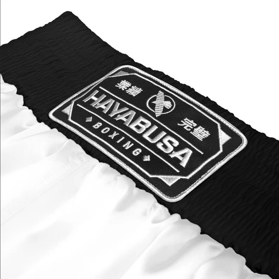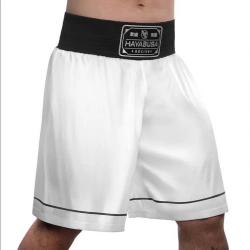 Pánské Boxerské šortky HAYABUSA Pro Boxing - bíléPánské Boxerské šortky HAYABUSA Pro Boxing v bílé barvě. Pánské Boxerské šortky jsou vyrobené z hedvábné hladké tkaniny, která je chladivá a příjemná na kůži.Tradiční ultraširoký elastický pas.- Vnitřní stahovací šňůrka s jednou smyčkou zajišťuje individuální nastavení.- Vlastní boxerská nášivka Hayabusa s plně vyšitými detaily.- Vhodné pro boxerský trénink i soutěže.HAYABUSA