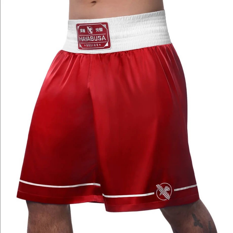 Pánské Boxerské šortky HAYABUSA Pro Boxing - červenéPánské Boxerské šortky HAYABUSA Pro Boxing v červené barvě. Pánské Boxerské šortky jsou vyrobené z hedvábné hladké tkaniny, která je chladivá a příjemná na kůži.Tradiční ultraširoký elastický pas.- Vnitřní stahovací šňůrka s jednou smyčkou zajišťuje individuální nastavení.- Vlastní boxerská nášivka Hayabusa s plně vyšitými detaily.- Vhodné pro boxerský trénink i soutěže.HAYABUSA
