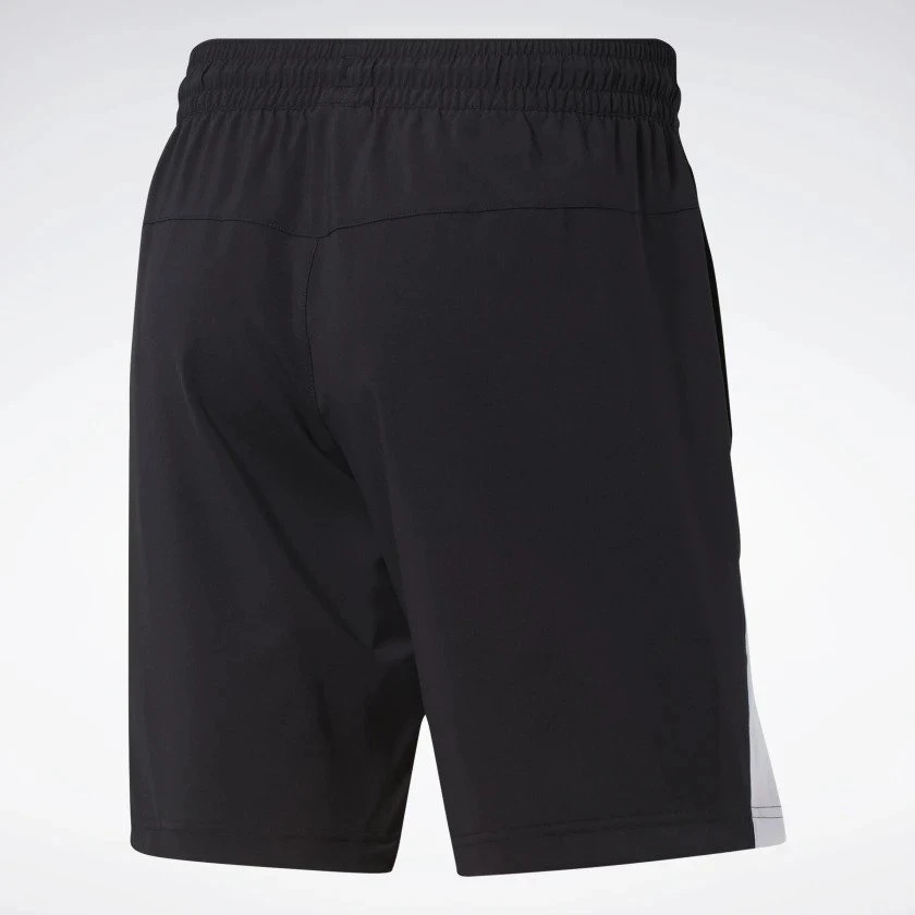 Pánské šortky REEBOK Workout Ready Graphic Shorts - černobíléPánské šortky REEBOK Workout Ready v černobílé barvě. Pánské šortky REEBOK jsou vyrobeny z lehkého 100% polyesteru. Šortky mají pohodlný střih a boční kapsy.