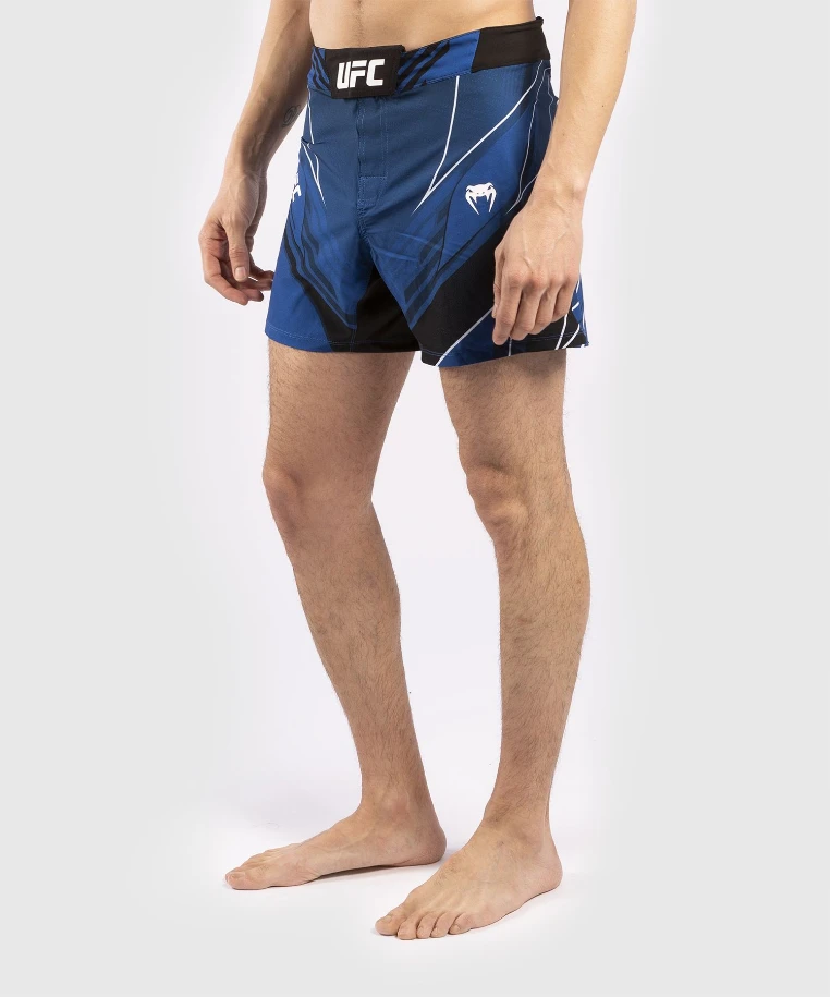 Pánské trenky VENUM UFC Pro Line - blueSérie Pro Line je druhou kolekcí autentických produktů od společnosti Venum x UFC. Tyto jedinečné vzory jsou inspirovány oblečením Fight Night, které nosí bojovníci během svých walkouts. Trenýrky VENUM UFC Pro Line v modré barvě. Krátké střihy Venum Pro Line Fightshorts jsou ultralehké šortky „do poloviny stehen“. Těsnější střih využívá tepelně boční rozparky, které poskytují úplnou volnost pohybu, jak ve stoje, tak na zemi. Pro Line Fightshorts s nastavitelným střihem pomocí systému zapínání na suchý zip a elastickým pasem zůstanou perfektně na svém místě po celou dobu tréninku.Technické vlastnosti VENUM:- 88% polyester / 12% elastan- Tkanina Ripstop: Vodotěsná a odolná proti roztržení- Zapínání na suchý zip v pase- Sítotisková loga- Tepelně lepené, laserem řezané boční rozparky- Nežehlit- Pouze studené praní- Nesušte v sušičceVENUM