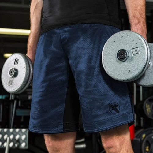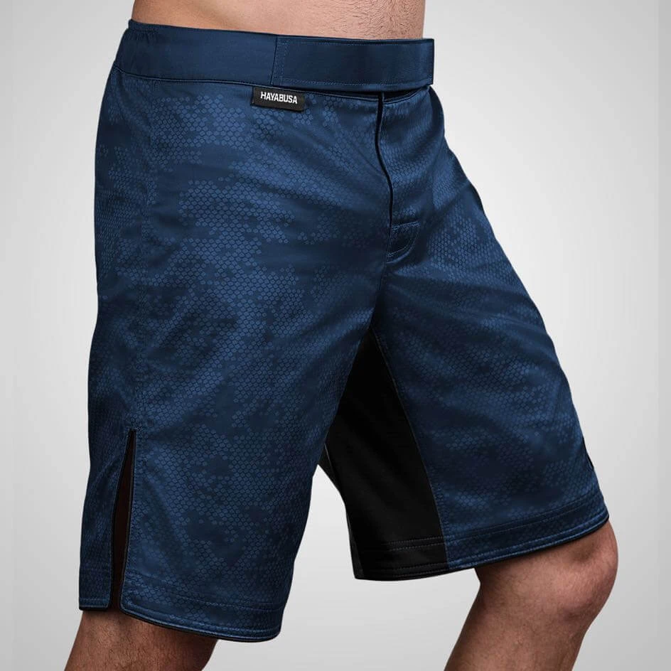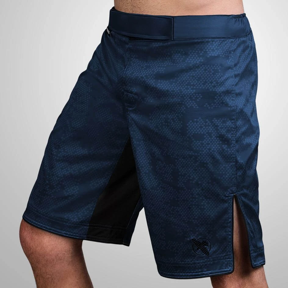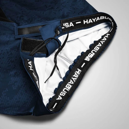 Šortky Hayabusa Hexagon - modréNové šortky Hayabusa Hexagon. MMA šortky HAYABUSA v modré barvě. Nohavice jsou opatřeny velkými rozparky. Šortky HAYABUSA mají robustní tkaninu, vyztužené švy a silikonový pás. Šortky mají profesionální zpracování a úžasný design.- Navrženy pro snadné ovládání bez omezení. HAYABUSA