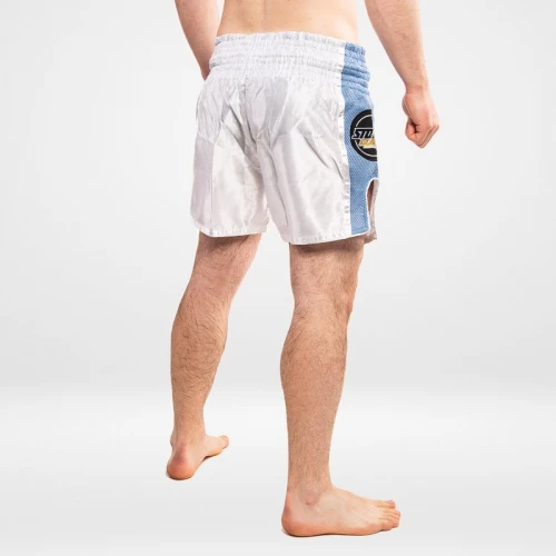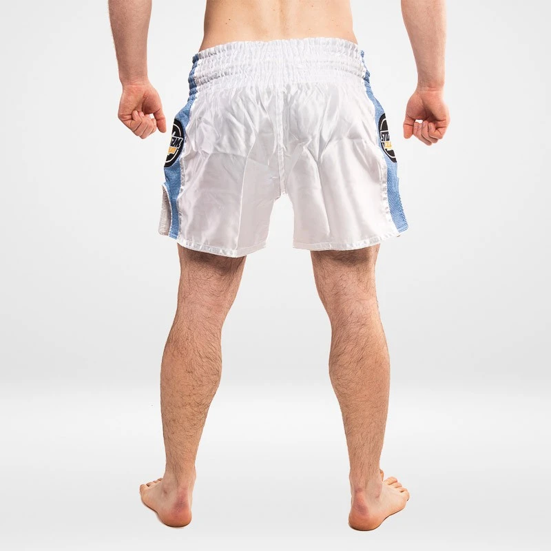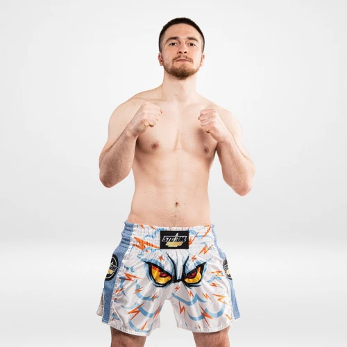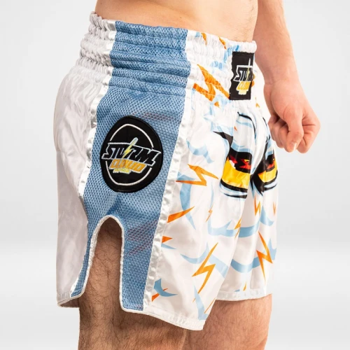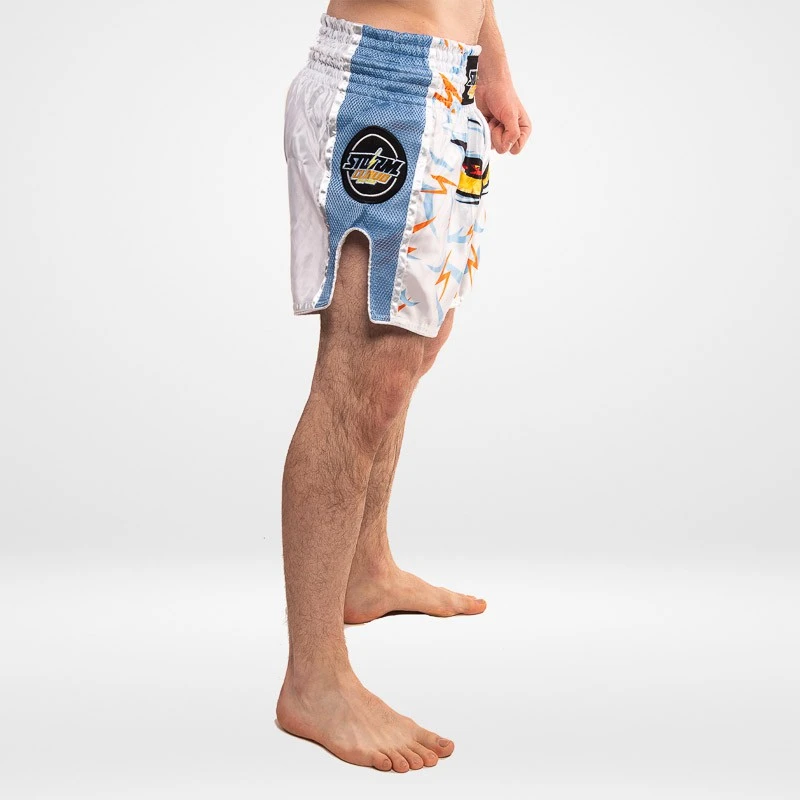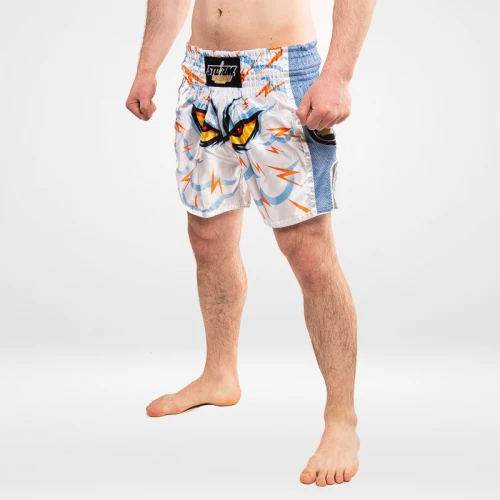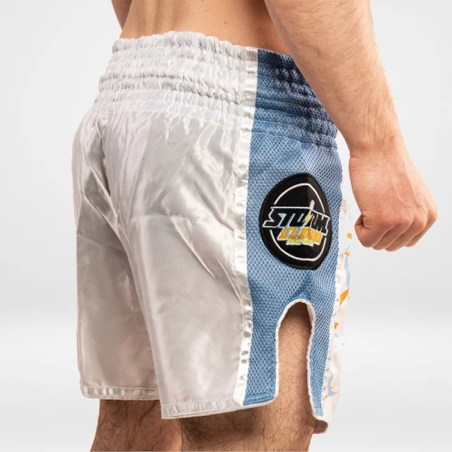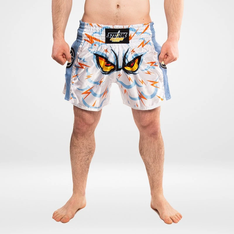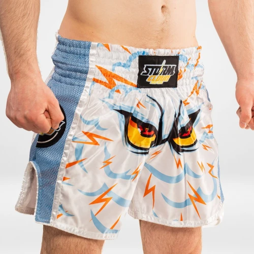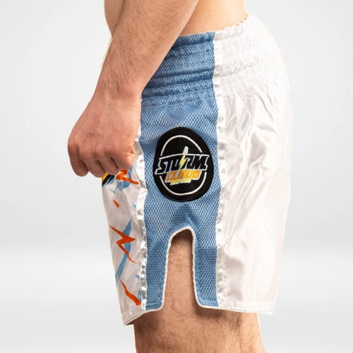 Šortky StormCloud jsou určeny pro trénink thajského boxu a bojových sportů. Krátké výřezy po stranách vám umožní volně kopat. Elastický pas zajišťuje dokonalé padnutí a zabraňuje pohybu šortek. Muay Thai šortky jsou vyrobeny z hladkého saténu a síťovaného materiálu na bocích šortek. Celé to zdobí loga značky StormCloud.