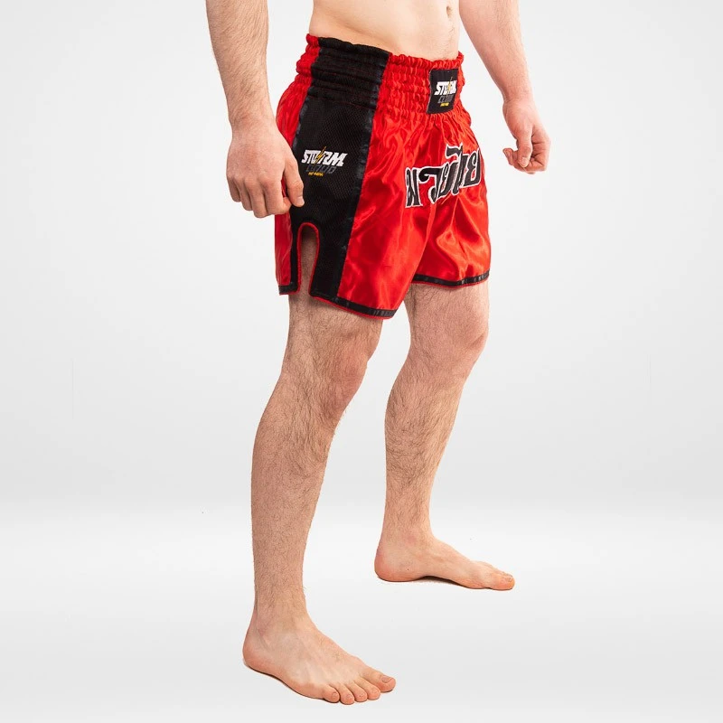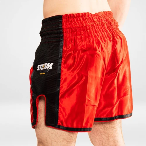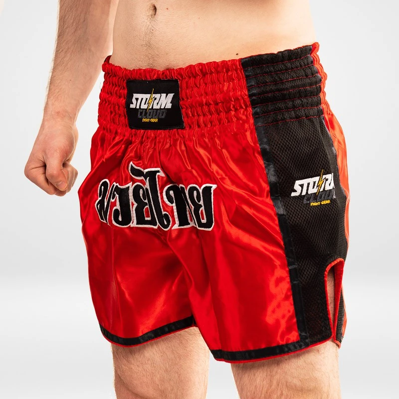 Šortky StormCloud jsou určeny pro trénink thajského boxu a bojových sportů. Krátké výřezy po stranách vám umožní volně kopat. Elastický pas zajišťuje dokonalé padnutí a zabraňuje pohybu šortek. Muay Thai šortky jsou vyrobeny z hladkého saténu a síťovaného materiálu na bocích šortek. Celé to zdobí loga značky StormCloud.