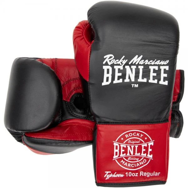 Boxerské šněrovací rukavice BENLEE Typhoon černočervenéBoxerské šněrovací rukavice BENLEE Typhoon v černo červeném provedení s bílým logem BENLEE. Boxerské rukavice jsou vyrobeny z pravé kůže. Boxerské rukavice Typhoon jsou zavazovatelné tkanicemi. BENLEE