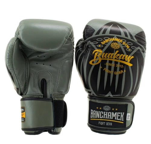 Kožené boxerské rukavice Buakaw Lotus - šedá/černá