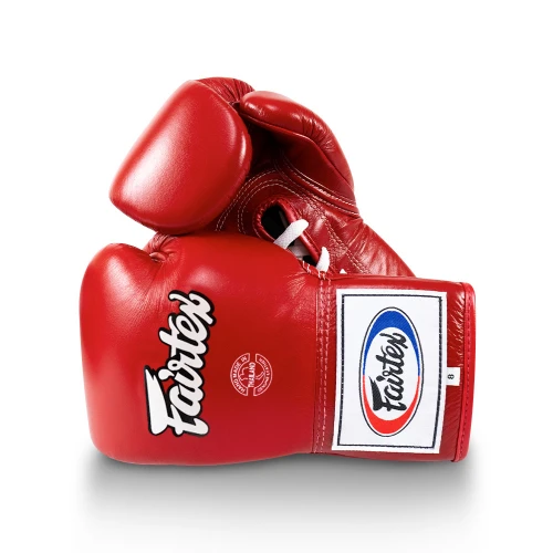 Závodní rukavice Fairtex BGL6-Pro Competition se zapínáním na šněrování.