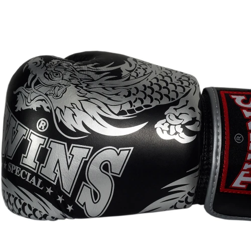 Boxerské rukavice TWINS - DRAGON - černá/stříbrná