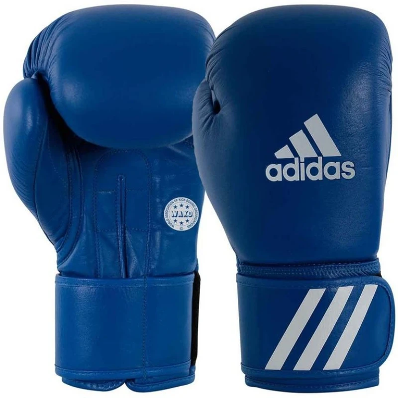 Boxerské rukavice Adidas WAKO - modré Boxerské rukavice Adidas WAKO v modré barvě. Boxerské rukavice jsou vyrobeny z kvalitní kůže. Rukavice WAKO mají výplň vyrobenou podle technologie I-Protech®- jednolitou lisovanou vložku z pěny. Speciální zpevněná manžeta s šířkou 9,5 cm se zvýšenou tuhostí s technologií Softpunch ®. Boxerské rukavice WAKO mají zapínání na suchý zip. Boxerské rukavice WAKO pro Kickbox.