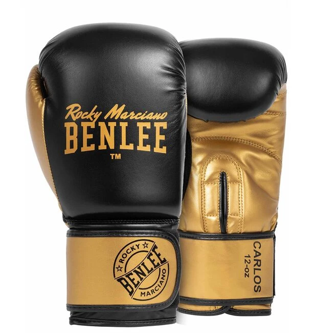 Boxerské rukavice BENLEE CARLOS - black/goldBoxerské rukavice BENLEE CARLOS v černo zlatém provedení se zlatým logem BENLEE. Boxerské rukavice jsou vyrobeny z umělé kůže. Boxerské rukavice CARLOS jsou na suchý zip. BenLee a Rocky Marciano jsou obě legendární jména z historie boxu. Rocky, šampión všech dob, ocenil inovaci a kvalitu produktů BenLee.- Vysoce kvalitní boxerské rukavice- Měkký polstrovaný polštář- Široké zapínání na suchý zip pro dokonalé uchycení- Materiál: 100% polyurethan BENLEE