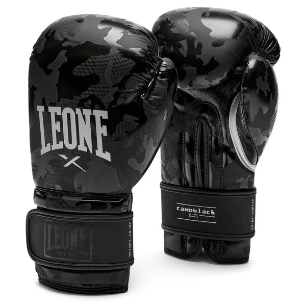 Boxerské rukavice Leone Camoblack jsou elegantní a rafinovanou nabídkou pro všechny, kteří oceňují styl a kvalitu. Motiv maskáče na matném podkladu je obohacen o stříbrné detaily. Polyuretanová výplň s příměsí pěny chrání ruce boxera a pro dlouhodobou životnost výrobku slouží vnější Flex PU potah.