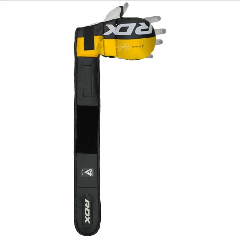 RDX MMA Rukavice REX T6 - 7 oz žlutéRDX MMA rukavice schválené švédskou asociací. Tréninkové rukavice MMA jsou ručně vyrobené z odolné umělé kůže Maya Hide™ s třívrstvou gelovou výplní. RDX MMA Rukavice REX T6 mají výbornou přilnavost a prodyšnost. Prvotřídní volba rukavic MMA pro trénující bojovníky smíšených bojových umění. - Podšívka GEL EFFICAX LINING™ pro dokonalé polstrování- Gelový Equilibrium Sheet™ absorbující nárazy- Palm-O™ Open Palm Design pro dokonalý úchop a větrání- Quick-EZ™ Hook-and-loop pro pevné uchycení a nejlepší ochranu zápěstíRDX