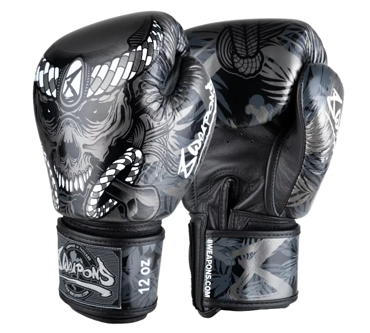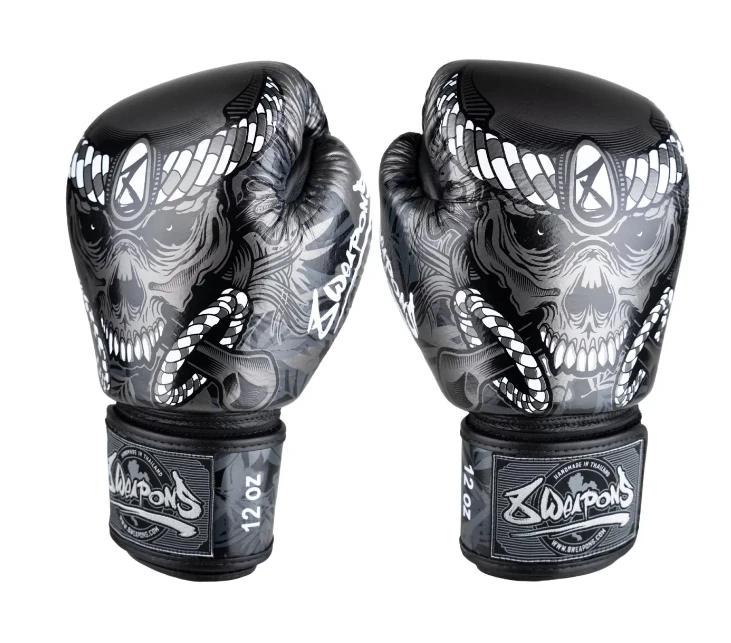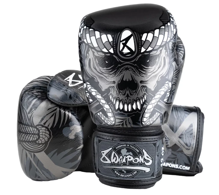 Boxerské rukavice 8 WEAPONS "Bone Island" jsou perfektní volbou pro Nak Muay, kteří oceňují kvalitu a styl. Boxerské rukavice jsou potištěny nápadnou lebkou s tradičním mongkolem, který odráží kořeny Muay Thai. Díky svému jedinečnému designu a ruční výrobě v Bangkoku jsou boxerské rukavice "Bone Island" skutečným vrcholem.
