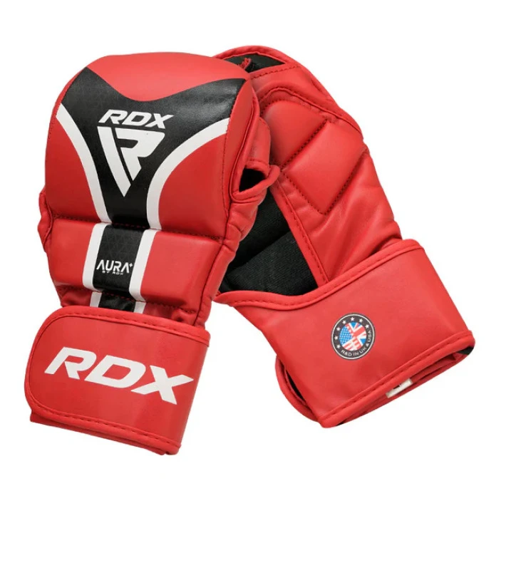 RDX MMA Rukavice Aura Plus T-17 - červenéVyzkoušejte maximální odolnost a ochranu při intenzivním grapplingu s grapplingovými rukavicemi RDX Shooter Aura Plus T-17. Tréninkové rukavice MMA jsou jsou vyrobeny z kůže Maya Hide™ Kalix Skin a jsou vybaveny vysoce absorpční tvarovanou pěnou s technologií „IMF“, plátem EVA-Lution™ a vnitřní podšívkou z tkaniny Dazzle Fabric splňující požadavky nařízení REACH, která zajišťuje prodyšnost. Palec je polstrován fólií EVA-Lution™ pro tlumení nárazů a rukavice se snadno nosí a nastavují pomocí zapínání na háčky a smyčky Quick-EZ.- Využívá odolnou kůži Maya Hide™ Kalix Skin- Kombinuje pěnu s technologií „IMF“ a fólii EVA-Lution™ pro optimální ochranu.- Polstrovaný palec s fólií EVA-Lution™ pro tlumení nárazů.- Vnitřní podšívka z tkaniny Dazzle Fabric vyhovující nařízení REACH zvyšuje prodyšnost- Zapínání na háčky a smyčky Quick-EZ™ pro snadné použití- Průmyslové šití zajišťuje dlouhou životnost RDX