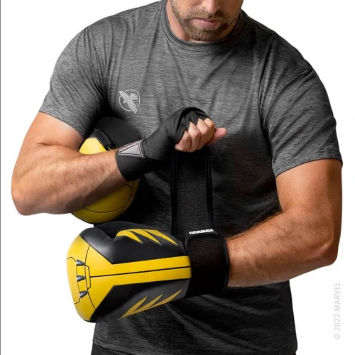 HAYABAUSA MARVEL Boxerské rukavice WolverinePředstavujeme vám Boxerské rukavice MARVEL! Mutant s nezastavitelnou léčivou silou, kovovými drápy z nesmlouvavým přístupem dělá z Wolverina jednoho z nejdrsnějších hrdinů ve vesmíru. Tento zkušený bojovník usměrnil svou zvířecí zuřivost a stal se jedním z nejoddanějších bojovníků X-Menů za dobro. Každá rukavice je inspirována Loganovým tradičním oblekem a zobrazuje jeho klasické žluté a černé barvy spolu s pouzdry s drápy a logem X-Men. Vlastnosti produktu:- Vlastní Wolverinův design se složitými detaily postavy.- Zápěstní pásky Dual-X se vzájemně prolínají a zajišťují pohodlné a přesné uchycení.- Světoznámá dlahová podpora zajišťuje dokonalé vyrovnání zápěstí.- Vícevrstvá technologie pěnového složení dodává maximální ochranu kloubů.- Palec z mikrovlákna umožňuje otírání potu.- Mimořádně měkká podšívka regulující teplotu udržuje ruce v chladu.- Certifikát pravosti Hayabusa X Marvel.HAYABAUSA