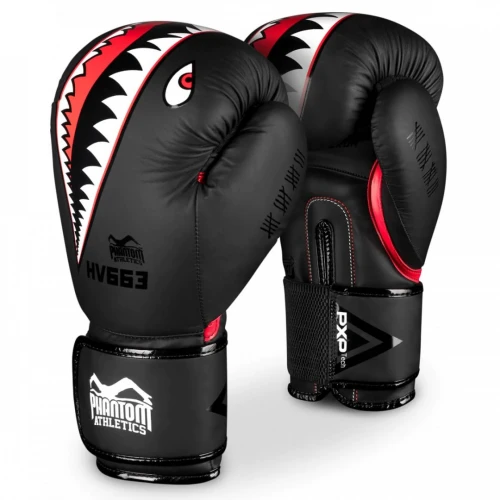 PHANTOM Boxerské rukavice Fight Squad - černé Boxerské rukavice Phantom FIGHT SQUAD vycházejí z našich nejprodávanějších modelů APEX. Jsou tedy precizně zpracované s důrazem na detail. Boxerské rukavice Fight Squad jsou vyrobeny z kvalitního materiálu (100% eko kůže) . Vynikají poutavým designem ve stylu starých bojových letounů „Shark Mouth“. Podrobnosti: - Nový materiál PU- Elastické zapínání na suchý zip - High-tech pěnové polstrování- Efektní Phantom Muay Thai design- 100% vegan PHANTOM