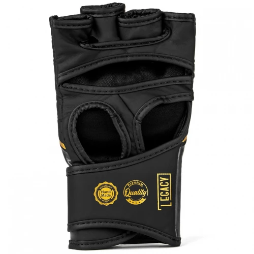 • Rukavice MMA Legacy dobře poslouží jak při tréninku, tak při amatérských soubojích, díky otevřenému palci umožňují velmi silný úchop, mimo jiné nezbytný. v nácviku zápasových technik a pozemních bojů.