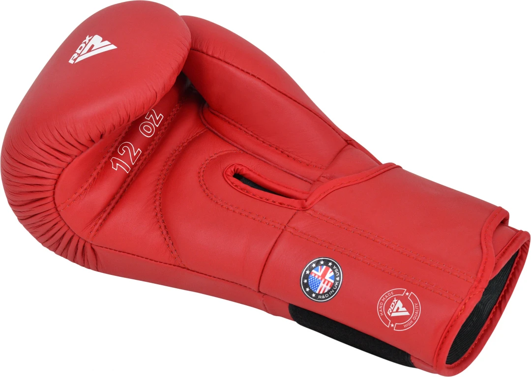 RDX Boxerské rukavice AS1 - červenéZažijte prvotřídní bezpečnost a lepší přesnost při intenzivních boxerských trénincích s boxerskými rukavicemi RDX Amateur Competition AS1. Tyto boxerské rukavice určené pro amatérské soutěže mají robustní vnější povrch vyrobený z kůže Kalix Skin-Maya Hide™, který zajišťuje odolnost i ochranu. Forma Quadro Dome 5 Technology s dodatečnou ochranou polstrováním SpongeX na manžetě poskytuje pohodlí a zvýšenou ochranu zápěstí. Díky vnitřní saténové látkové podšívce jsou prodyšné a pohodlné. Boxerské soutěžní rukavice mají jedinečný design dlaně, který se přizpůsobí tvaru vaší ruky. - Odolný vnější povrch z kůže Kalix Skin-Maya Hide™.- Nárazy pohlcující plíseň Quadro Dome 5 Technology- Další vrstva polstrování SpongeX na manžetě pro ochranu zápěstí- Vnitřní podšívka ze saténové tkaniny pro lepší prodyšnost a pohodlí-Zapínání na háčky a smyčky Quick-EZ™ pro pohodlné nošení- Šití prémiové kvality odolné proti roztržení RDX