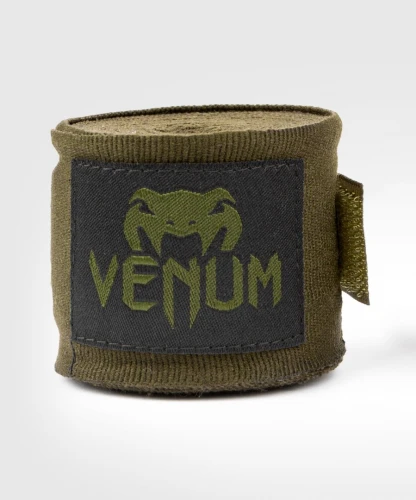 Boxerské bandáže značky VENUM KONTACT - 4 m Khaki/BlackVENUM Bandáže jsou vyrobeny z elastické bavlny. Bandáže KONTACT mají zapínání na suchý zip. Bandáže VENUM jsou dlouhé 2,5 metru.Černá nášivka s logem VENUMVENUM