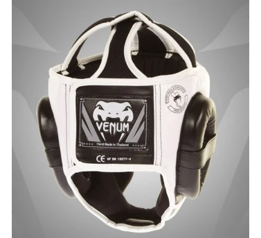 Přilba Venum má flexibilní uzavření s pomocí suchých zipů (vertikální i horizontální)