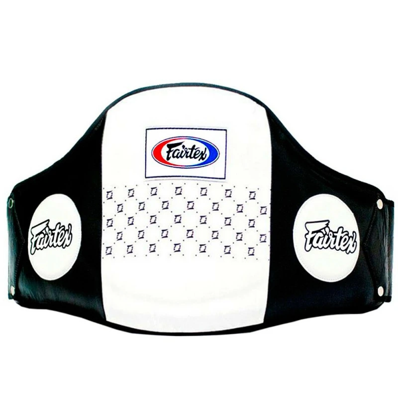 Chránič břicha Fairtex BELLY PAD - černobíláChránič břicha FAIRTEX je vyroben z kůže a z třívrstvého vysoce výkonného polstrování. Vyztužené oblasti jsou strategicky umístěny pro přesné pokrytí těla. Díky 180 ° ochraně bude vaše břicho dokonale zakryté. Chránič břicha má anatomický tvar a s nastavitelnými popruhy.TECHNICKÉ VLASTNOSTI- Pravá kůže- Anatomický tvar- Vnitřní polstrování- Kompletní ochrana.- Nastavitelné popruhy.- Ručně vyráběné v Thajsku.FAIRTEX