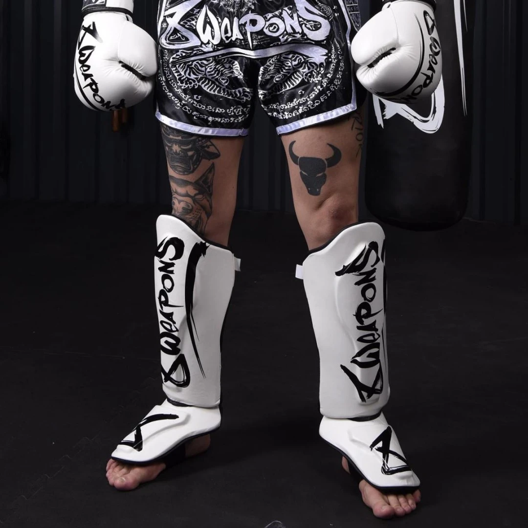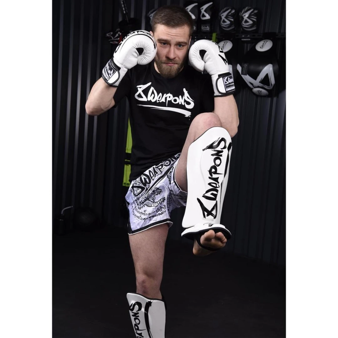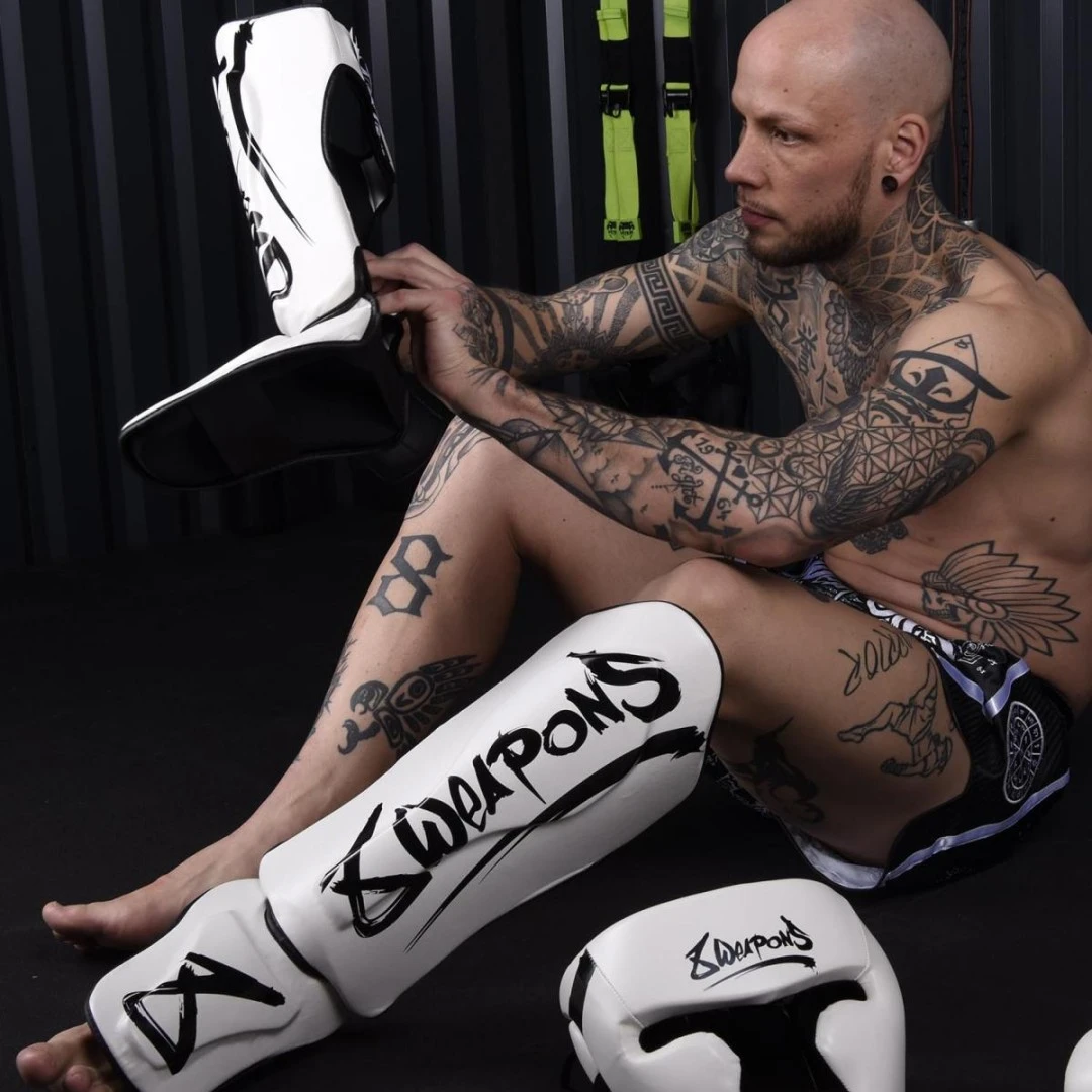 S holenními chrániči 8 Weapons ze série UNLIMITED jste v bezpečí. Tento model jsme navrhli před dlouhou dobou podle našich představ a intenzivně jsme jej testovali. Jako výsledek představujeme chránič, který vás komplexně ochrání v každé tréninkové situaci a sníží riziko zranění na minimum. Vícevrstvé a pevné polstrování chrání holenní kosti před intenzivními nárazy. Dokonce i při nárazu s lokty soupeře je riziko poranění značně sníženo. Pro stabilní uchycení chrániče na noze jsme vybrali dva široké suché zipy, které se snadno zapínají i v boxerských rukavicích. Kromě toho dva elastické pásky drží chránič na svém místě. Holenní chrániče 8 WEAPONS UNLIMITED jsou vyrobeny z vysoce kvalitní syntetické kůže a prodávají se v páru.