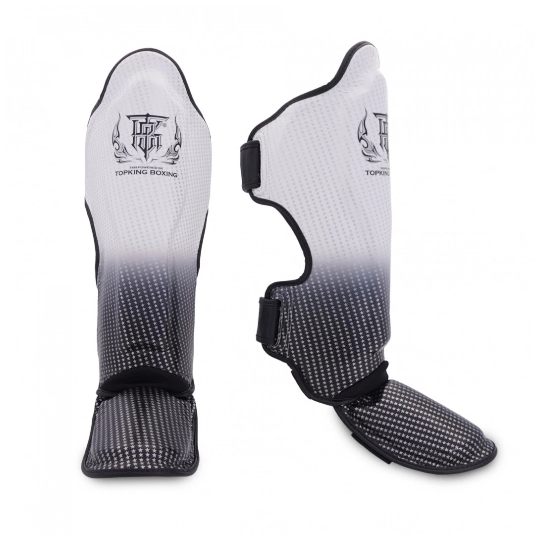 Chrániče holení Top King SUPER STAR - StříbnéChrániče holení a nártů od legendární Thajské značky TOP KING model SUPER STAR ve stříbrné barvě. Chrániče holení Top King jsou vyrobeny z pravé kůže, mají pásky na suchý zip, které se přizpůsobí přirozenému tvaru nohy. Chrániče holení jsou vhodné pro všechny bojové sporty speciálně pak pro Muay Thai.- zesílené polstrování pro efektivní ochranu- nízká hmotnost pro snadnou manipulaci- ruční výyroba v Thajsku- délka holeně: S 39cm, M 41cm, L 43cm, XL 45cm- materiál: kůžeTop King