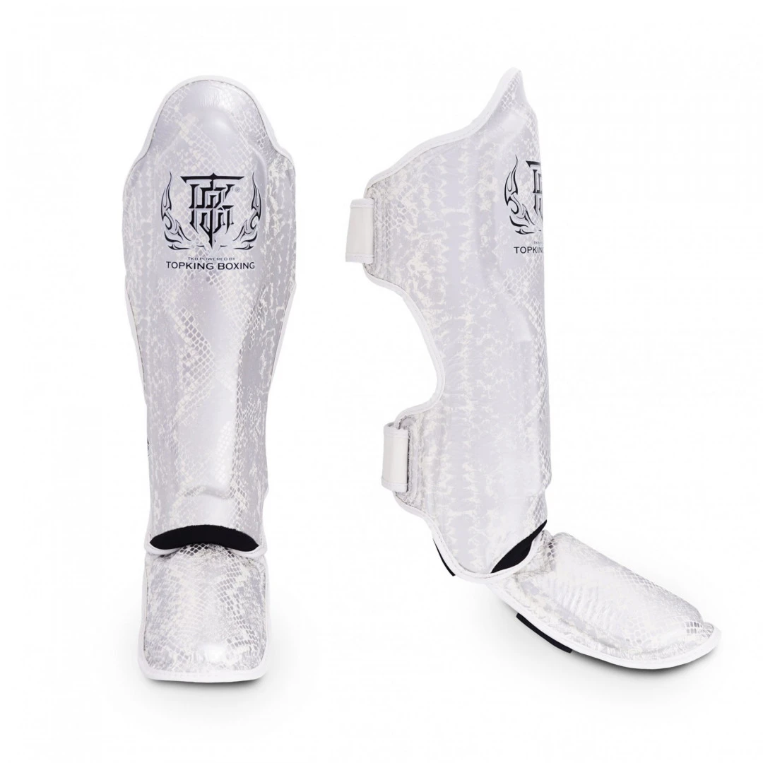 Chrániče holení Top King SUPER SNAKE - bílo zlatéChrániče holení a nártů od legendární Thajské značky TOP KING model SUPER SNAKE v bílo zlaté barvě. Chrániče Top King jsou vyrobeny z pravé kůže, mají pásky na suchý zip, které se přizpůsobí přirozenému tvaru nohy. Chrániče holení jsou vhodné pro všechny bojové sporty speciálně pak pro Muay Thai.- zesílené polstrování pro efektivní ochranu- nízká hmotnost pro snadnou manipulaci- ruční výyroba v Thajsku- délka holeně: S 39cm, M 41cm, L 43cm, XL 45cm- materiál: kůžeTop King