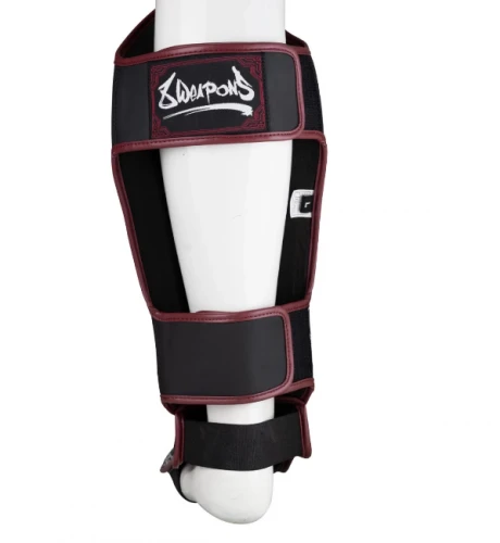 Pro stabilní uchycení použijte dva široké suché zipy, které lze snadno otevřít a zavřít, i když máte na sobě boxerské rukavice. Dva elastické pásky drží chránič na místě v oblasti chodidla. Přechod na nárt je nyní vylepšen neoprenovou vložkou a dělá nožní část pružnější. 8 holenní chrániče ZBRANĚ jsou vyrobeny z vysoce kvalitní umělé kůže a jsou dodávány jako pár.