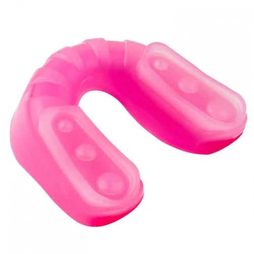 • Kombinace plastu, silikonové pryže tlumící nárazy a gelové vložky zaručuje mimořádnou odolnost a přesné přizpůsobení chrániče tvaru dásně a zubního oblouku.