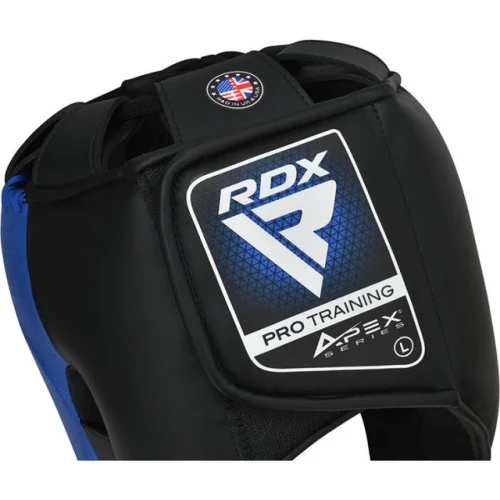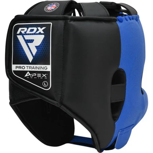 RDX Přilba APEX A5 - modráZajistěte si maximální ochranu s přilbou hlavy APEX s ochrannou lištou na nos od společnosti RDX. Přilba APEX A5 chrání hlavu a hřbet nosu a eliminuje riziko vzniku vážných zranění/poranění. Vysoce technologické polstrování LumeXTM uvnitř rovnoměrně rozptyluje nárazy a poskytuje vám pocit „bez nárazu“. Precizně navržená boxerská ochrana hlavy poskytuje bezpečnost při zachování optimálního zorného pole. Díky prvotřídní kombinaci pěny Max-shockTM Equilibrium a polstrování SpongeX na formě je pokrývka hlavy tlumivá a ideální pro trénink MMA, boxu.- Technologie LumeXTM - Pokročilá technologie podporuje rozptyl nárazů a účinně snižuje intenzitu úderu.- Semišová kůže použitá na vnitřní straně dodává pohodlí a umožňuje dokonalé přizpůsobení různým velikostem hlavy.- Optimální design - Konstrukce chrániče hlavy podporuje ideální rozsah vidění a zlepšuje soustředění na hru.- Tlumení nárazů - Pěna Max-shockTM Equilibrium a polstrování SpongeX použité pro pohodlné nošení a tlumení nárazů.- Rychlé zapínání EZ Hook-and-Loop - Systém zapínání umožňuje dokonalé přizpůsobení, snadné nasazování a sundávání a dodává této tréninkové výbavě pro bojové sporty protiskluzové vlastnosti.- Schváleno FEDERAZIONE ITALIANA GRAPPLING MIXED MARTIAL ARTS (FIGMMA).- Schváleno EMMAARDX