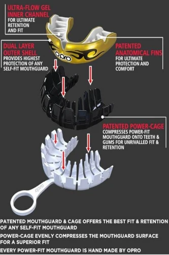 Power Cage je unikátní forma, díky které vytvarujete a přizpůsobíte chránič přesně Vašim potřebám. Power Cage při tvarování rozprostře tlak rovnoměrně na celou čelist a zajistí tak maximálně účinné přilnutí.