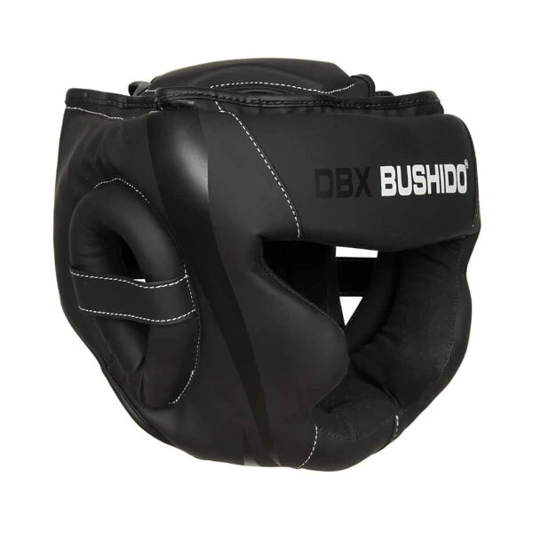 Boxerská helma DBX BUSHIDO ARH-2190-B je vyrobena ze zpevněné, umělé kůže a je vyplněna PU pěnou, která dokonale pohlcuje nárazy. Přilba je navržena v souladu s bezpečnostními standardy a zajišťuje tak bezpečnost a komfort během zápasu, tréninku či nácviku se sparing partnerem. Tvar helmy je navržen tak, aby byly chráněny lícní kosti, oči, nos a uši. Zpevnění v oblasti čelisti jí poskytuje větší stabilitu a napomáhá předcházet jejím zraněním. Helma je vyrobena z umělé kůže se zvýšenou elasticitou. Uvnitř je vyplněna pěnou vysoké hustoty a povrch je upraven tak, aby nenasával pot. Díky tomu odolává praskání a snadno se udržuje. Ze zadní strany je široký pás se suchým zipem, který zaručuje, že helma bude na hlavě přesně sedět.