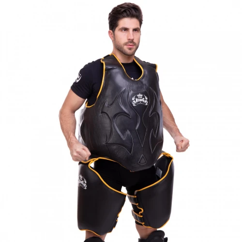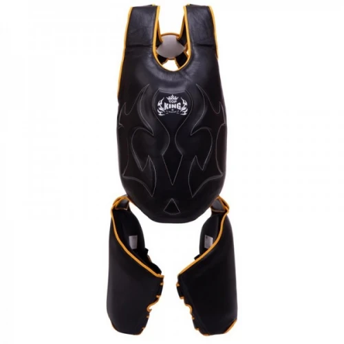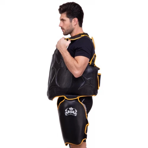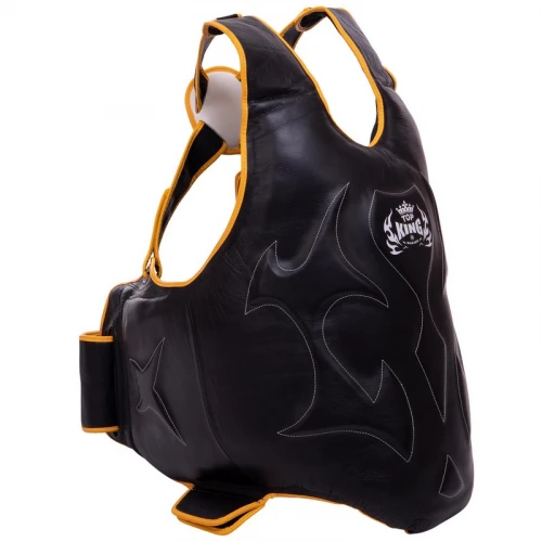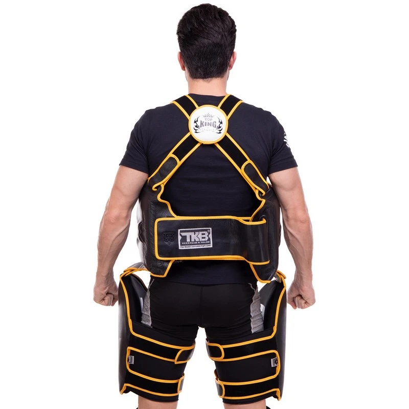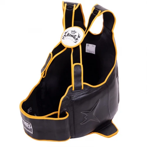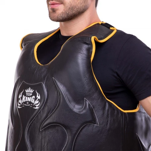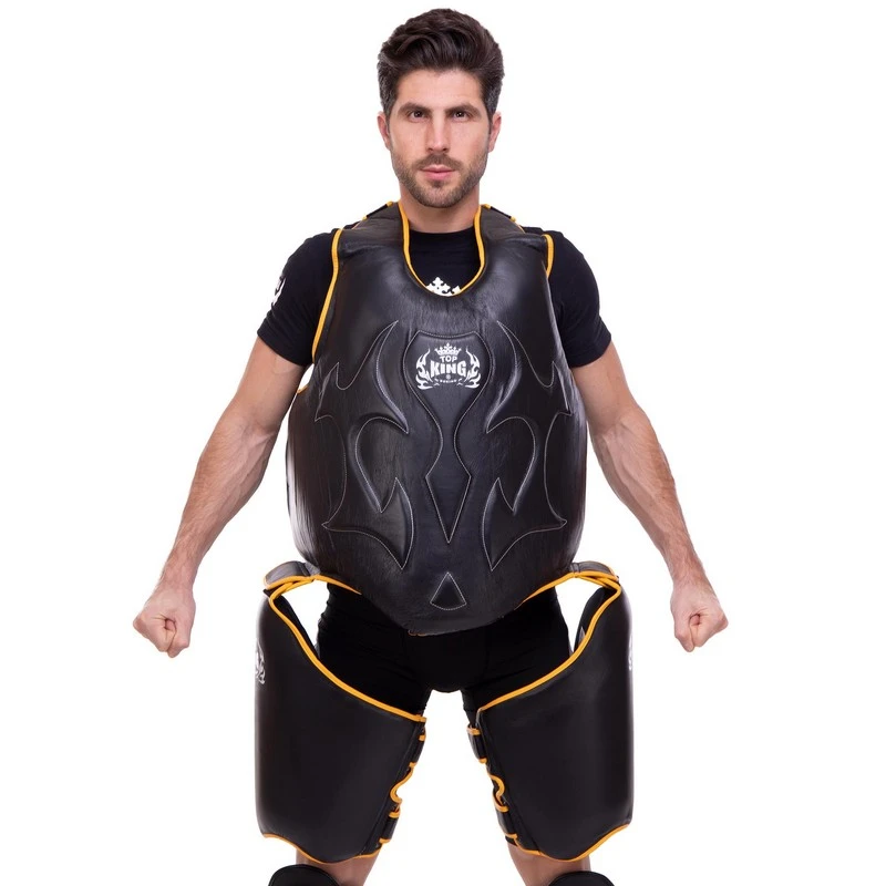 Chránič břicha a nohou TOP KING je nepostradatelnou pomůckou pro trenéry kickboxu, MMA a Muay Thai. Poskytuje plnou ochranu spodní části trupu a stehen. Tento chránič se TOP KING, se přizpůsobí tělu. Nastavitelné popruhy. Nezbytnou součást každého trenéra bojových sportů. Více vrstev polstrování umožňuje tlumit údery bez rizika bolesti nebo zranění.- Materiál: 100% kůže- Pěna s vysokou hustotou: optimální ochrana.- Chránič stehen se dá oddělit od horní části. TOP KING